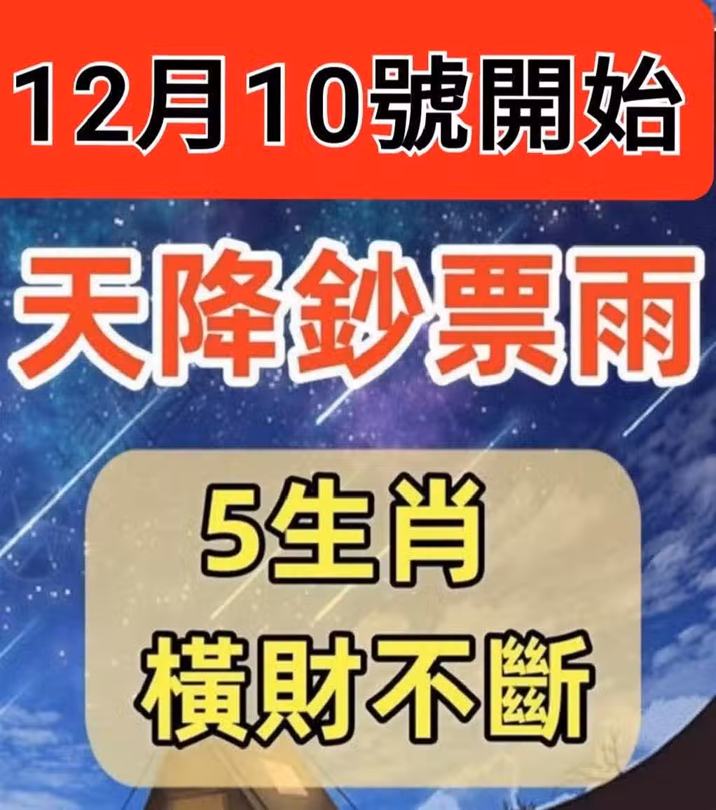 12月10號開始天降鈔票雨,5生肖橫財不斷!