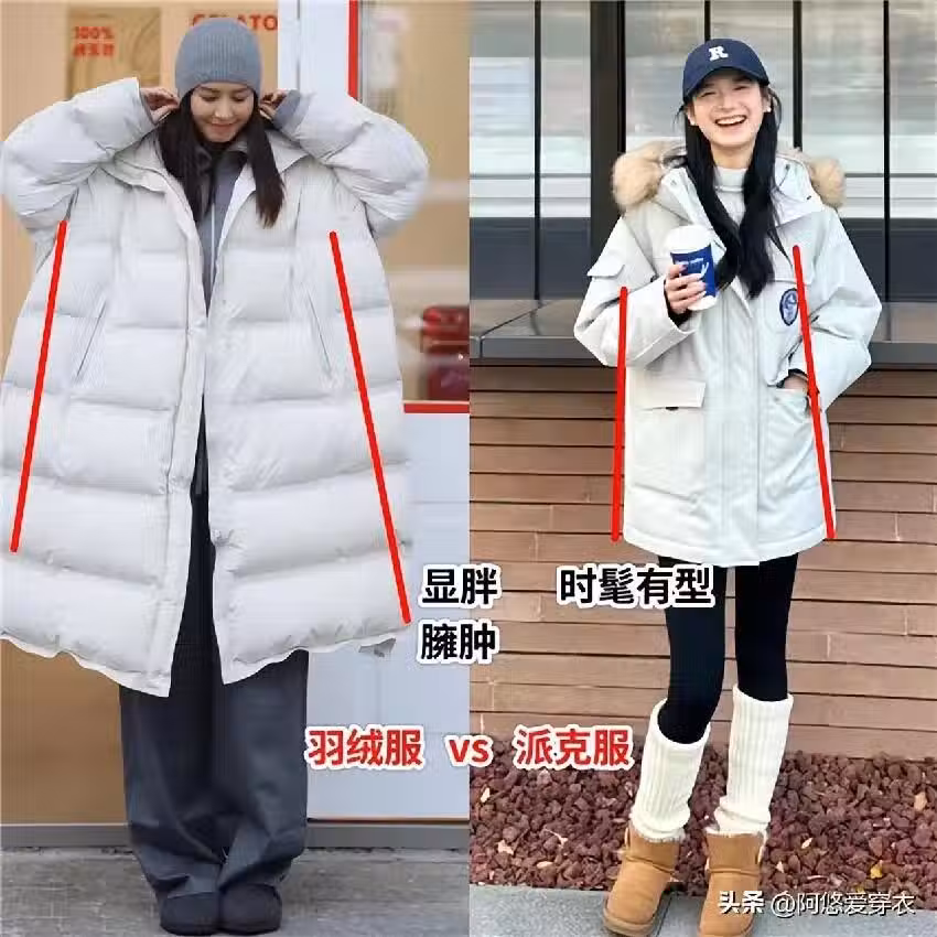 這款外套和羽絨外套最大的不同就是膨脹感沒那麼強,因此也就擺脫了顯胖的困境,它通常採用防風防水的面料,內襯則填充了厚實的羽絨或毛皮,確保在極端天氣下也能保持溫暖,現如今派克服的外觀設計簡約而不失時尚感,無論是經典的純色還是時尚的撞色設計,都能讓你在冬季人群中脫穎而出。