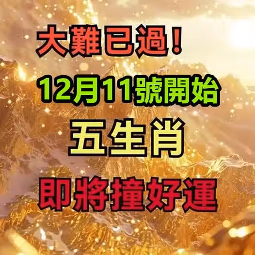 大難已過,明天12月11號開始,五生肖即將撞好運