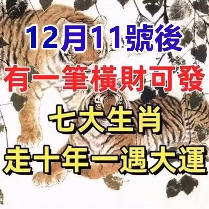 12月11號後有一筆橫財可發,走十年一遇大運的七大生肖