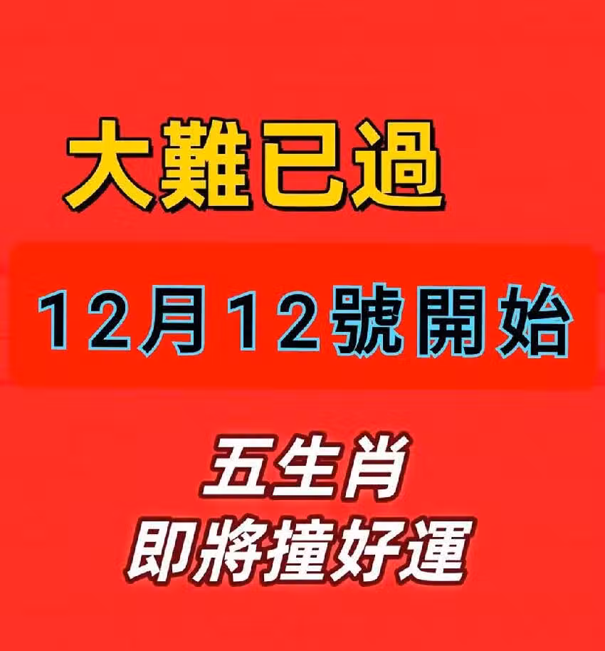 大難已過 !12月12號開始 五生肖 即將撞好運