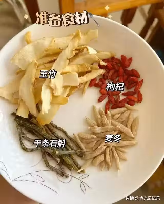 玉竹:潤肺養陰,益胃生津。對於熬夜引起的咽喉乾燥、皮膚缺水有很好的緩解效果。