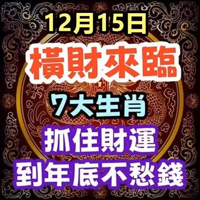 明天12月15日橫財來臨,7大生肖抓住財運,到年底不愁錢
