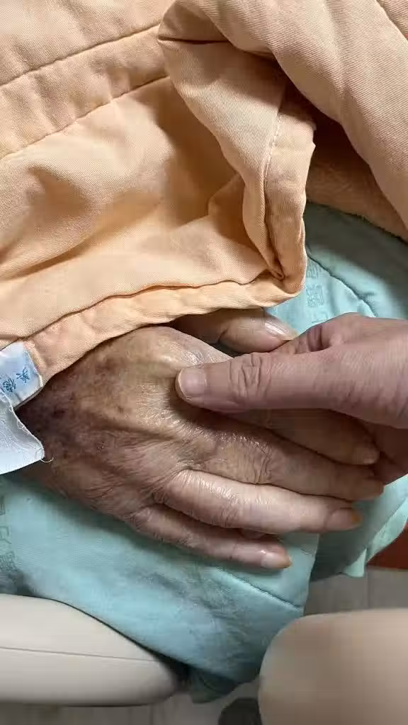 她感慨道「憂苦多病了一輩子的他,臉上展現出難得的平和與鬆弛」她還曬出了父女最後牽手的照片,並在爸爸耳邊最後一次輕聲說道:「爸爸,我們出院囉。