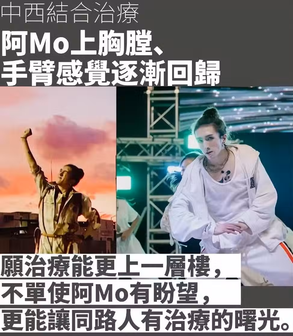 目前,李啟言還在治療之中,胸膛和手臂全面恢復感知,一個月前還可以提起3公斤的重物。