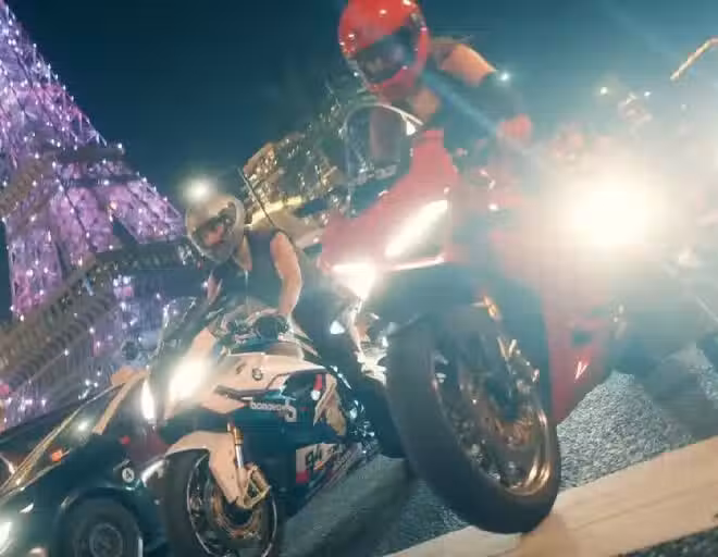 兩人對視後,在發動機的轟鳴聲中心照不宣的開始了比賽,上演了一出速度與激情。