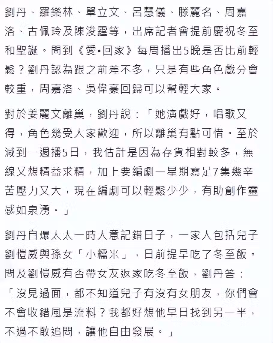 劉丹的這個反應讓人一言難盡,他雖然已經八十歲了,但體力和頭腦都很靈活,每周要拍攝5集《愛回家》,絕對不是健忘和老糊塗,那麼只有兩種可能,要麼是劉愷威分手了,要麼就是他不想再曝光兒子的私生活。