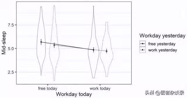 研究還深入分析了這些參與者的平均中睡時間(即入睡時間與醒來時間的中點)。