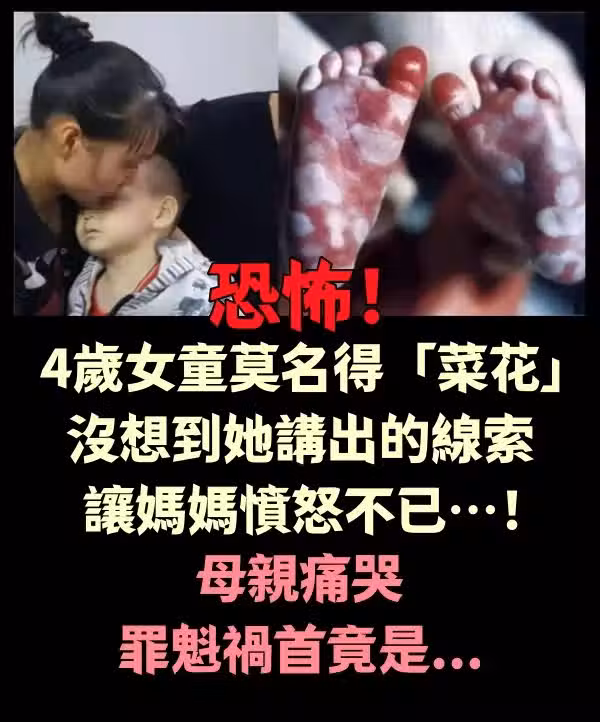 恐怖!4歲女童莫名得「菜花」,沒想到她講出的線索讓媽媽憤怒不已…!母親痛哭,罪魁禍首竟是…