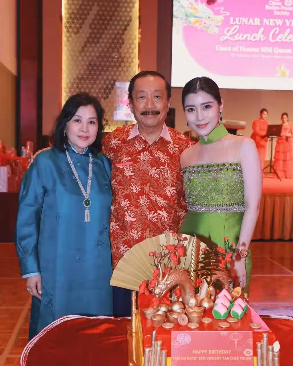 陳雪鈴為爸爸準備的生日蛋糕亦相當別致,蛋糕有一有把巨型金扇,中間位置放有一條巨龍,巨龍前方鋪落了金元寶和金幣,另一邊則放有壽桃,蛋糕的四周放滿不少金色富貴竹,相當有貴氣!
