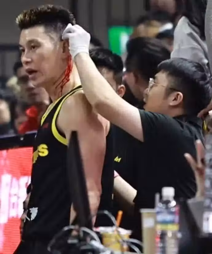 此役,新北國王后衛林書豪在首節比賽中挂彩,耳後血染賽場。