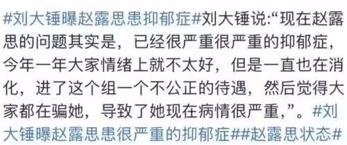 ▲趙露思還被狗仔「攝影劉大錘」指出她有憂鬱症、病情很嚴重。(圖/攝影劉大錘微博)