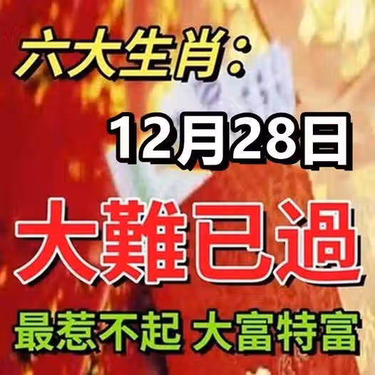 六大生肖:12月28日大難已過(最惹不起)大富特富