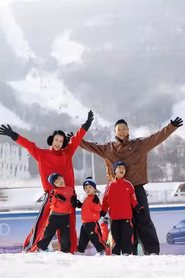 TVB視後一家五口內地度假!現身吉林雪場,兩個兒子共用一張臉