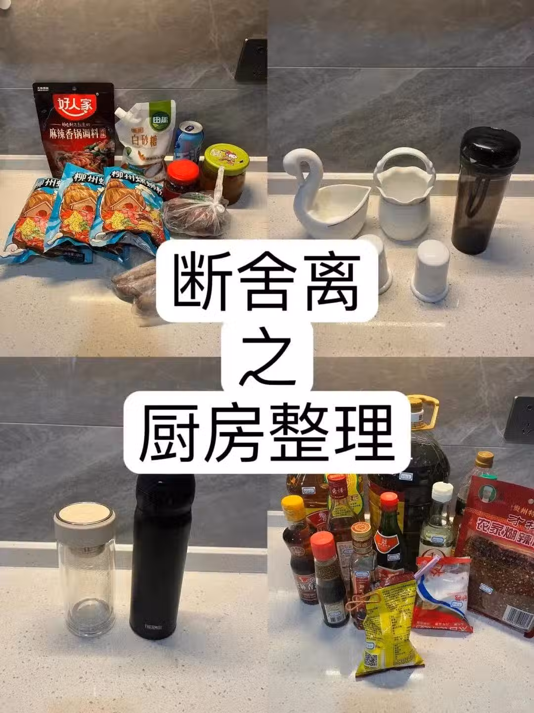 囤積太多的塑料袋,已經很久沒有換的廚房抹布、老化漏水的膠皮手套,很久沒有用的小廚電(可以賣二手)
