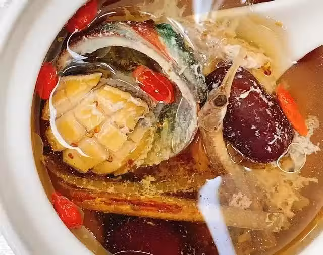 食材:海龍1條、鮮鮑1個、菟絲子1-3克、乾貝3顆、瘦肉100-120克、紅棗3顆、枸杞、薑片1片