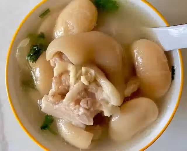 4、放入泡好的芸豆、一些薑片、少量料酒、小火慢燉至豬蹄軟爛 大概2個小時 自己嘗試肉的軟爛程度 撒上香菜就可以出鍋開吃啦!調個自己喜歡的調料蘸著吃,糯嘰嘰的口感真的很愛,感覺吃了一碗的膠原蛋白。