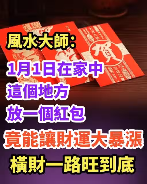 風水大師:1月1日在家中這個地方 放一個紅包 , 竟能讓財運大暴漲,橫財一路旺到底