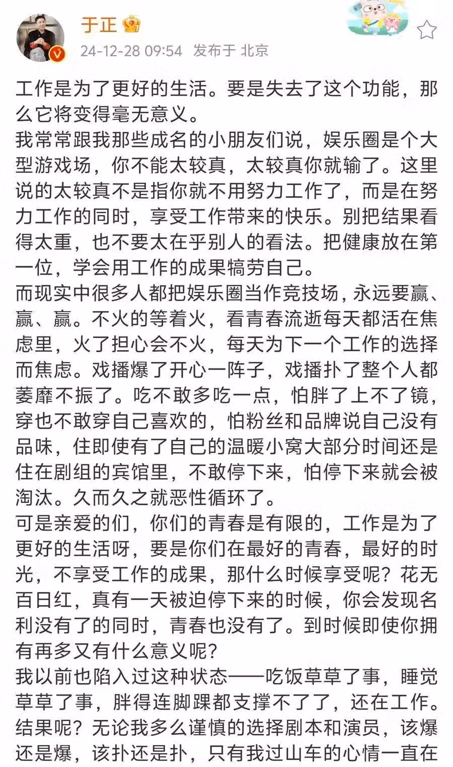 於正髮長文談娛樂圈發展,疑似暗指趙露思,語重心長都是大實話