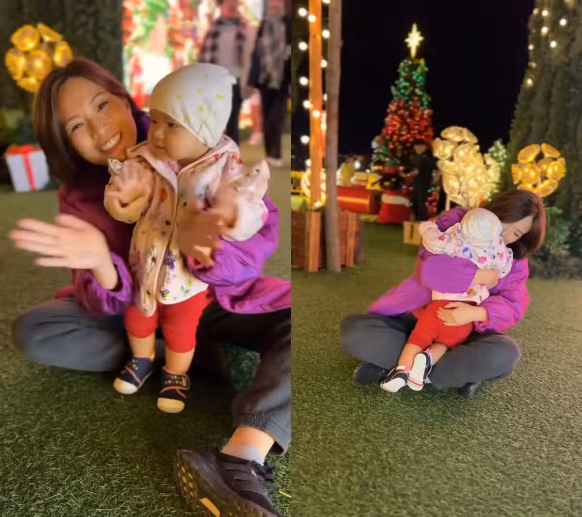 43歲港姐朱慧敏母女跨年!無懼7個月孕肚單手抱娃,即將三年抱倆