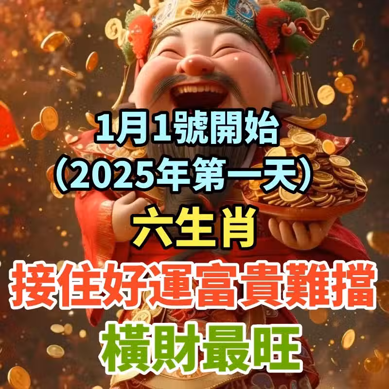 1月1號開始(2025年第一天)接住好運富貴難擋 橫財最旺的六生肖!