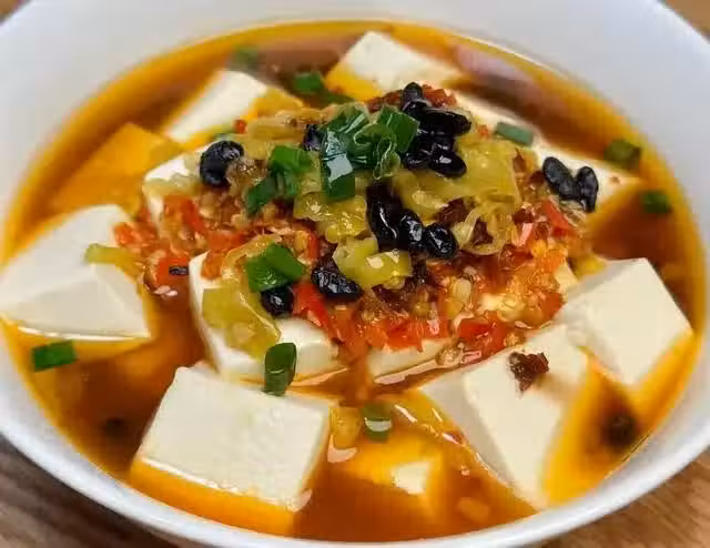 食材:嫩豆腐400克、剁辣椒、干辣椒粉、野山椒、豆豉、蔥花
