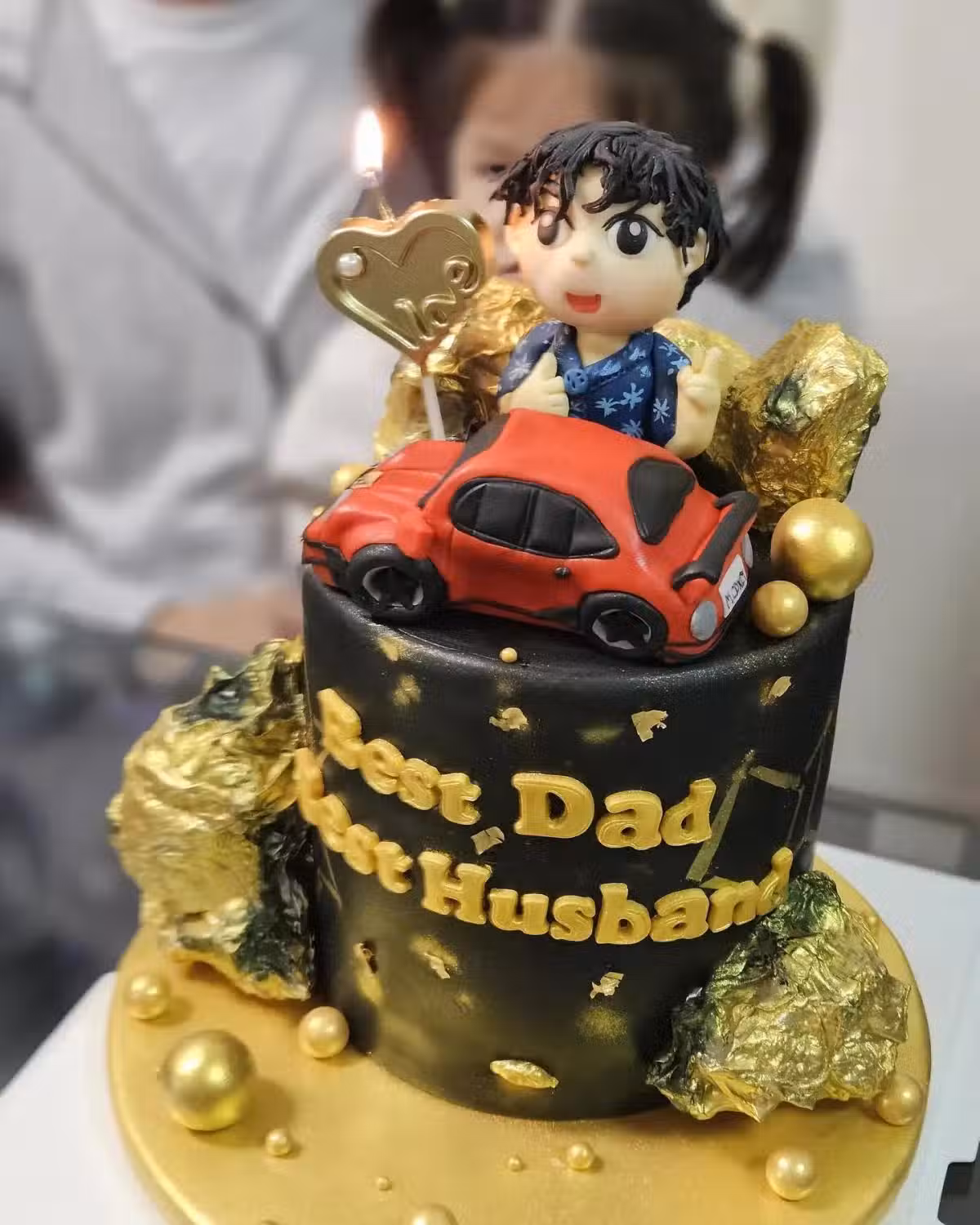 鍾嘉欣為老公準備了一個造型很酷的生日蛋糕,上面還寫著「Best Dad」和「Best Husband」字樣,看來鍾嘉欣對老公的評價真的很高呀,無論是當爸爸還是當老公,在她心裡都是最好的。