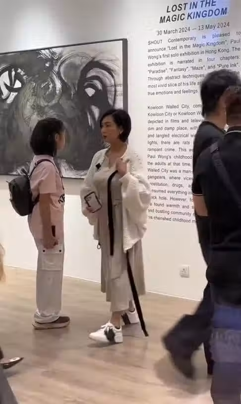 60歲黃貫中首開畫展,52歲朱茵攜12歲女兒露面,何超儀拄拐捧場
