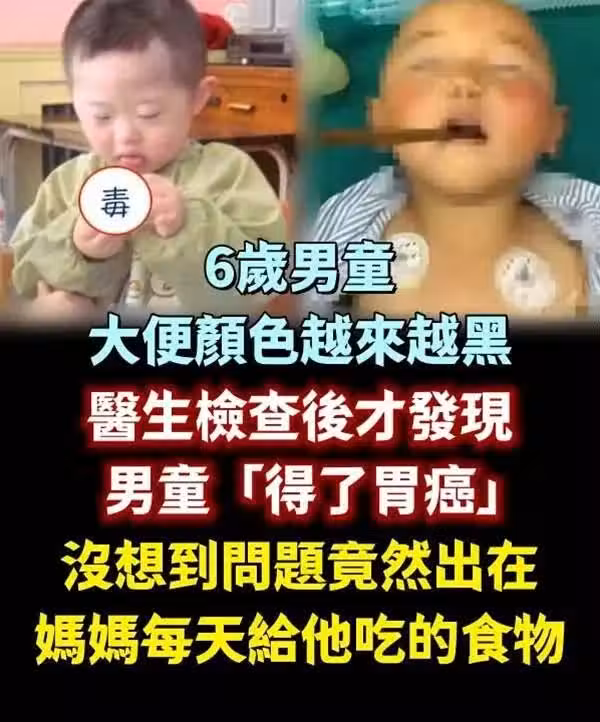6歲男童大便顏色越來越黑,醫生檢查後才發現男童「得了胃癌」沒想到問題竟然出在媽媽每天給他吃的「這個食物」