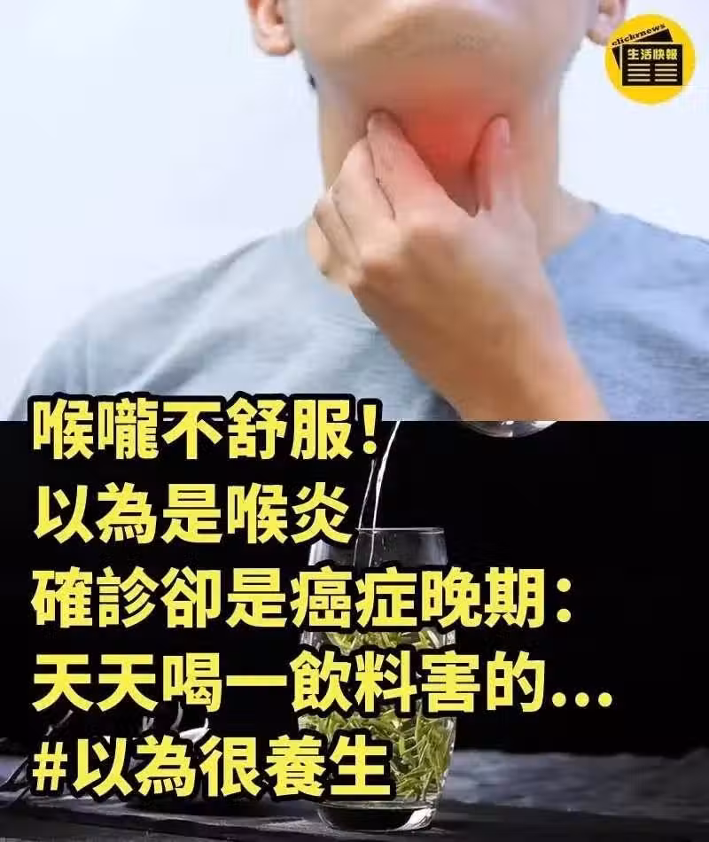 喉嚨不舒服! 以為是喉炎「確診卻是癌症晚期」:天天喝一飲料害的...#以為很養生