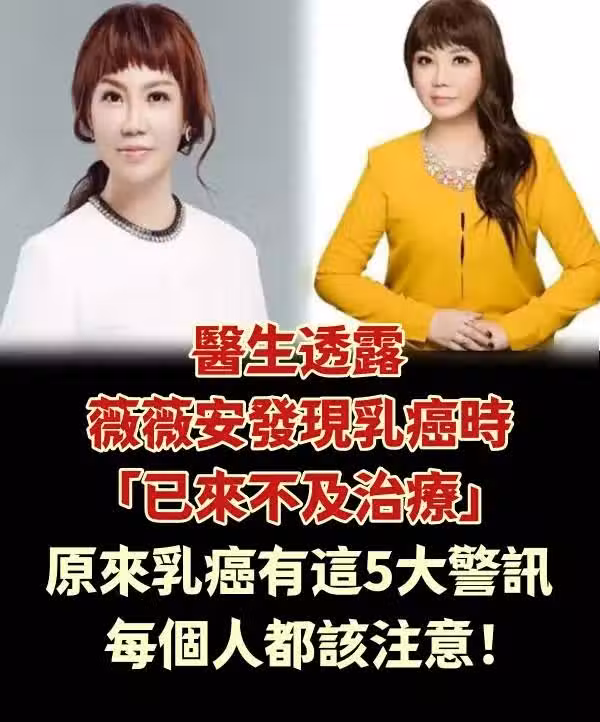 醫生透露薇薇安發現乳癌時「已來不及治療」! 原來乳癌有這「5大警訊」,每個人都該注意