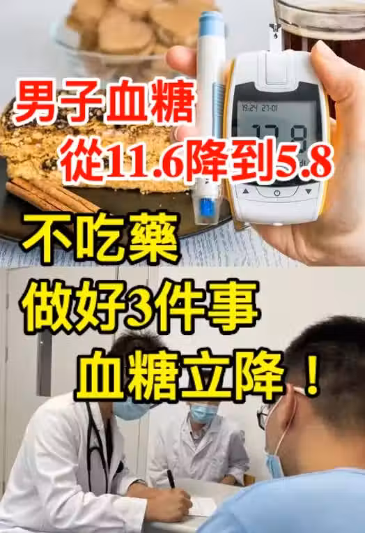男子血糖從11.6降到5.8,分享:不吃藥,做好這3件事,血糖立馬降 !