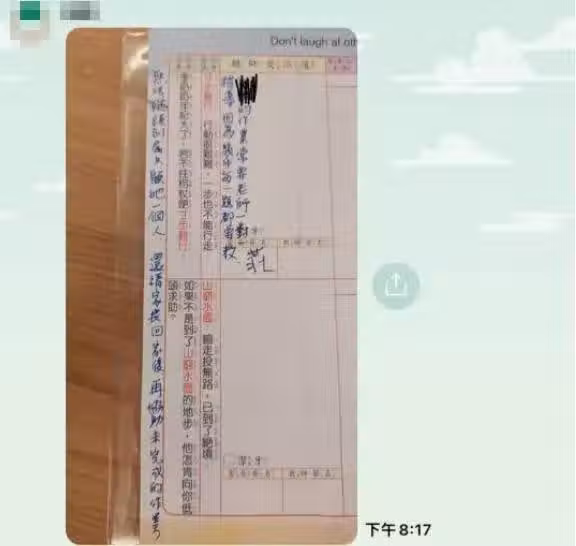 一名網友在臉書社團《匿名公社》上分享了一張老師與學生家長的對話截圖,感嘆「現在老師真難當!」只見畫面中是老師在聯絡簿上提醒家長,由於孩子的作業幾乎都不會寫,常常需要老師一對一指導,但老師實在無法只顧一個學生,因此希望孩子回家後,家長能協助完成作業。