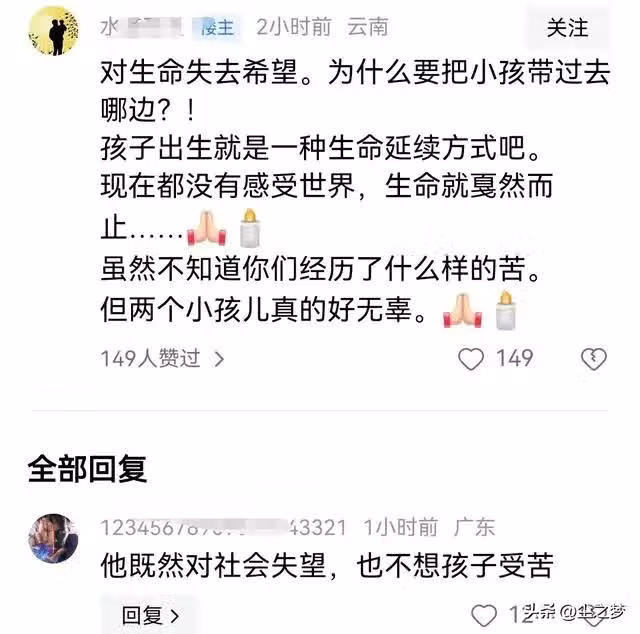 可能真像網友說的那樣,父母對生活絕望了,也不想自己的兒女在人世間受苦受罪!難道真是這種病態的情節讓父母給兒女做了「表率」和洗腦?
