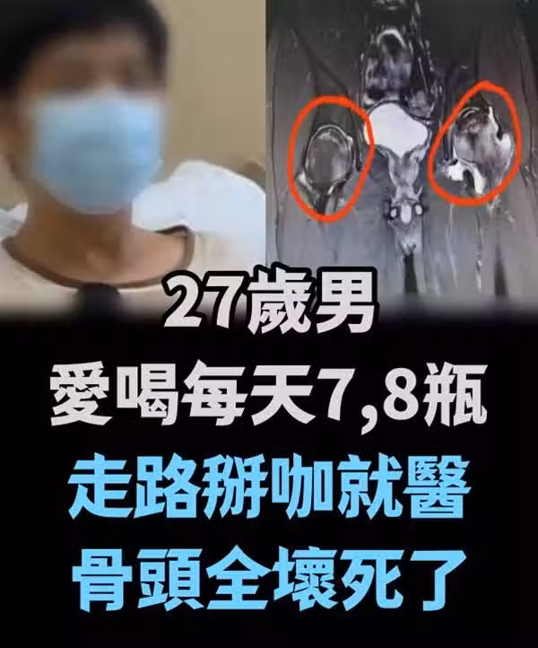 27歲男愛喝每天7、8瓶 走路掰咖就醫:骨頭全壞死了!