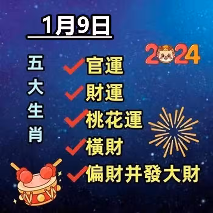 1月9日:官運 財運 桃花運 橫財 偏財並發大財的五生肖。
