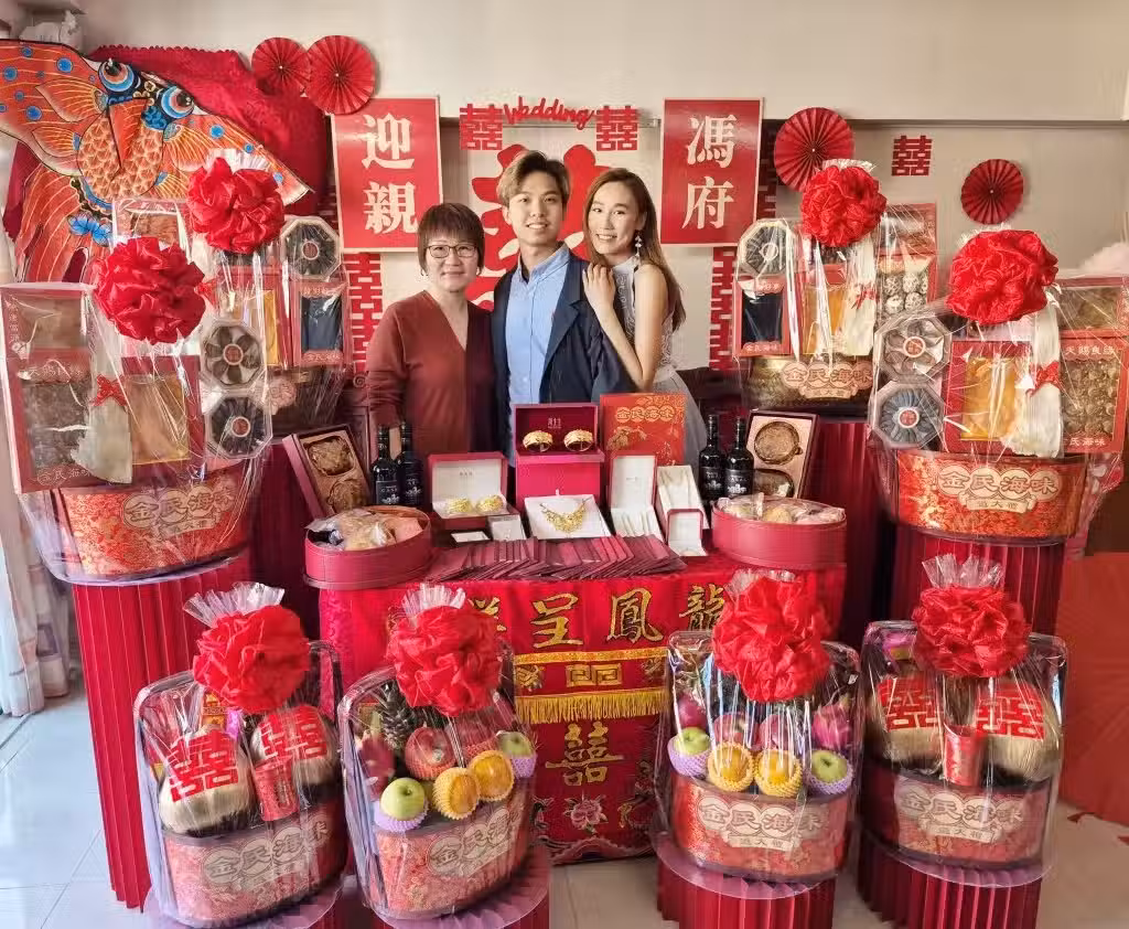 TVB女神宣布下月結婚!傳統過大禮場面震撼,金器海味擺滿三張桌