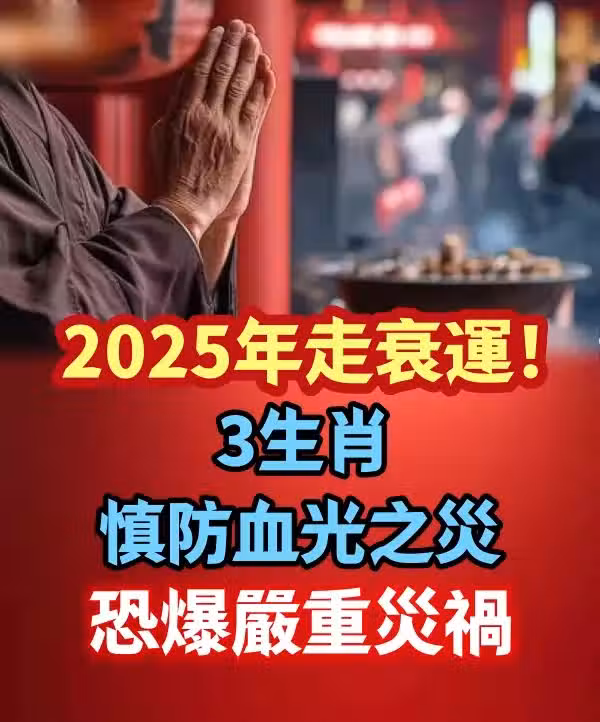 2025年,《搜狐網》命理專欄點名「3生肖」,在2025年可能會遇到血光之災,這可能是一個充滿考驗與挑戰的嶄新年度,需要格外謹慎小心,特別注意自身安全及健康問題,才能避免意外的發生,化險為夷。