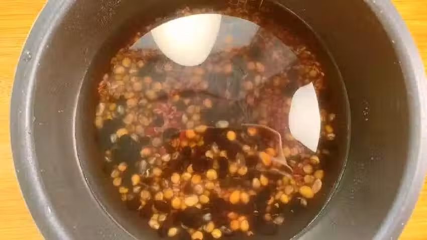2、把浸泡後的豆子倒入電飯煲內或者是煮鍋內,裡面加入沒過豆子三分之二的冷水,如果是電飯煲摁煮飯鍵煮30分鐘。