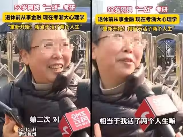面對記者的詢問,她從容回應:「第二次考研了,52歲,退休了,重新來過。」前半生她是從事金融業的,後半生她想學習心理學,重新開始一次。