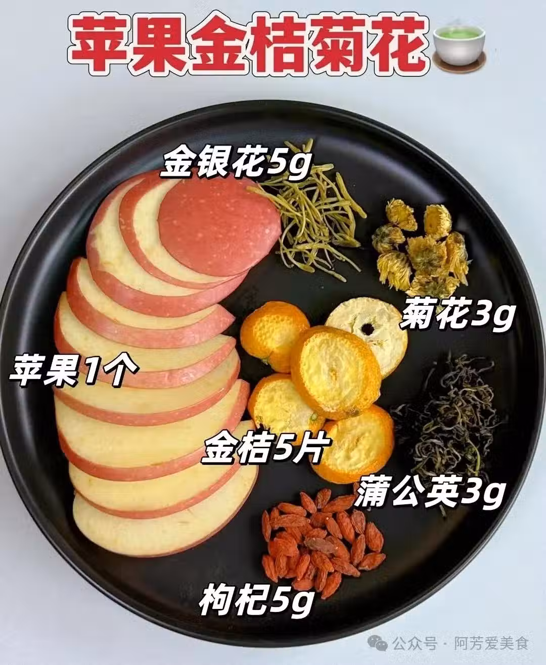 蘋果金桔菊花,在裡面加入了金桔和菊花,還有蒲公英和金銀花。它的口感就會偏涼爽,非常適合大餐後來一杯,解解膩的!日常生活里也可以多喝喝,潤潤身體的水分。