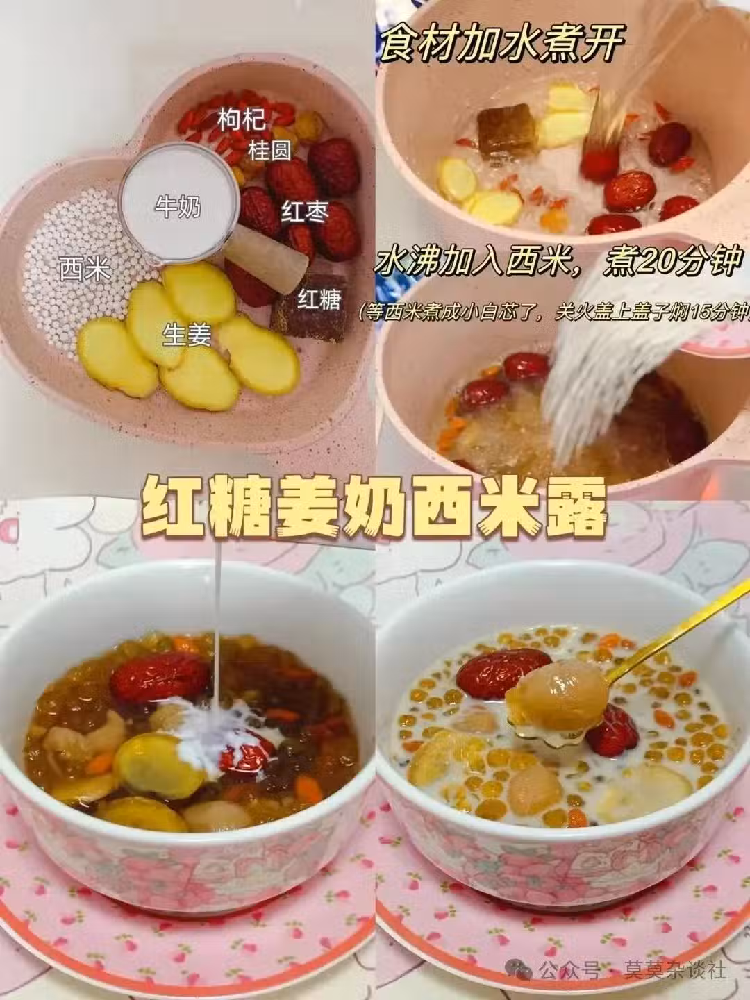 📖食材:生薑3片 | 紅糖1塊 | 紅棗5顆 | 西米50g | 枸杞適量 | 牛奶150ml