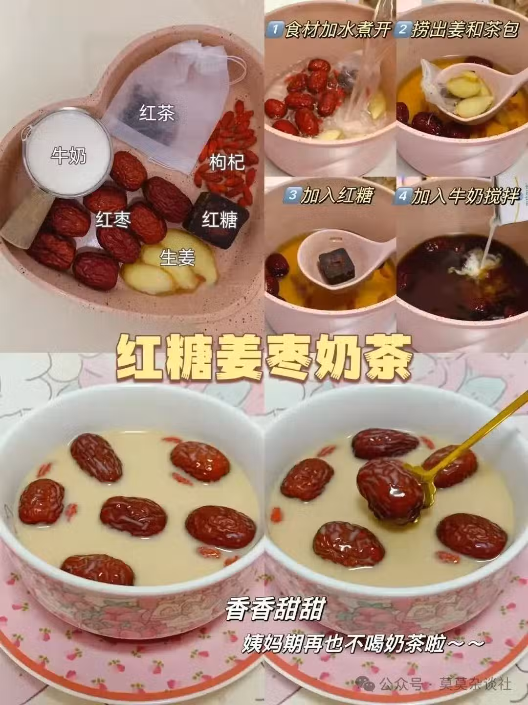 經期也想喝奶茶?這款健康版紅糖姜棗奶茶就是為你量身定製的! 紅茶提神,紅糖和紅棗暖胃,搭配牛奶的醇香,喝完後滿足感滿滿。