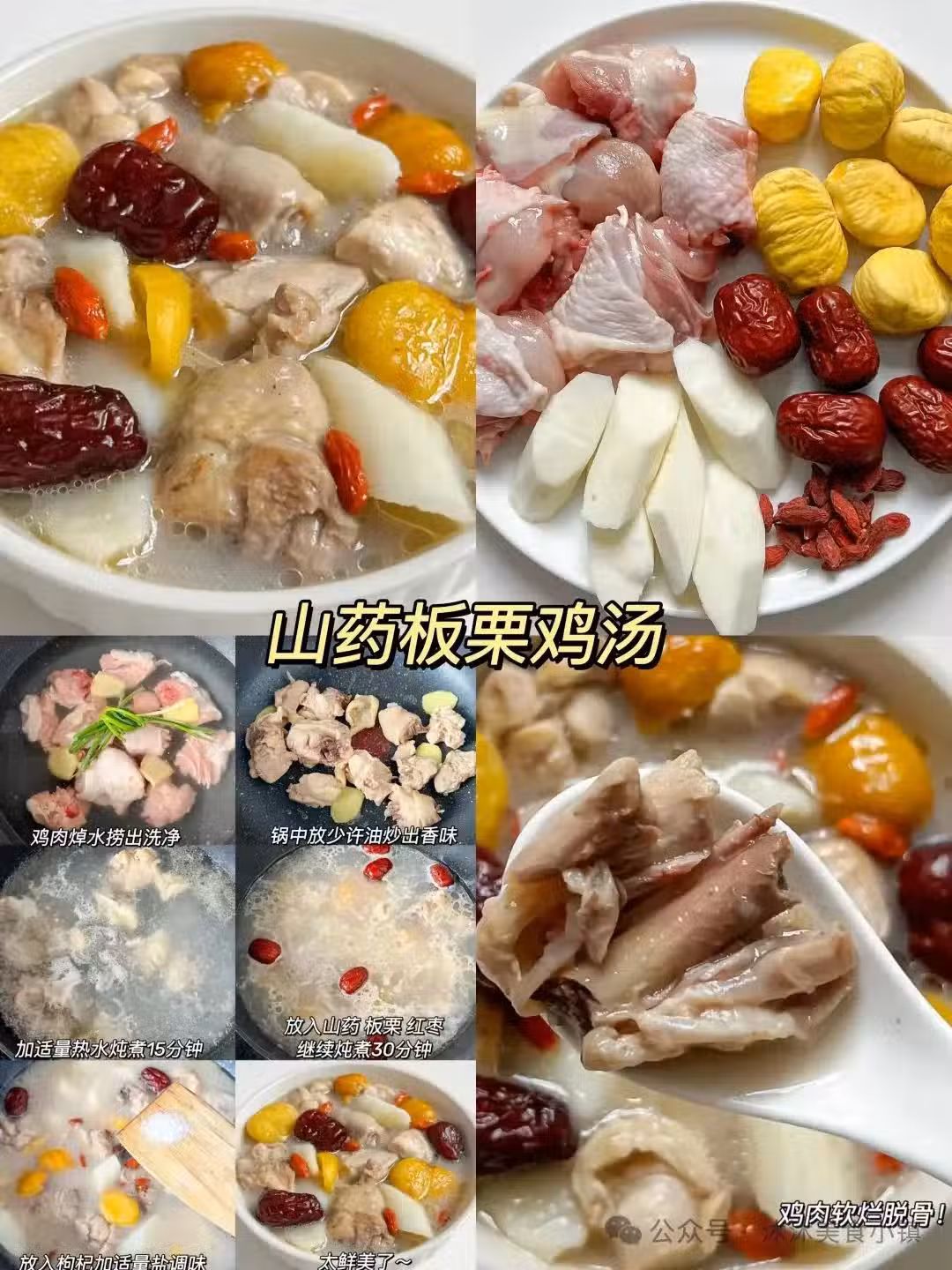 山藥和板栗都是秋冬的時令食材,搭配雞肉,這款湯不僅健脾養胃,還能增強免疫力。喝上一碗,感覺整個人都充滿了活力!