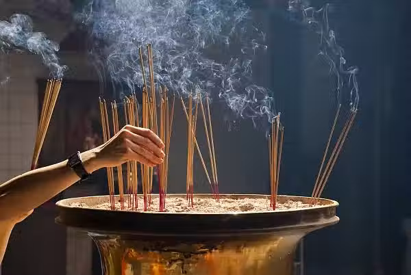 」燒了一把子香,如果我們在家上香,一根就可以了,家庭空間往往都比較小,一根就可以了。