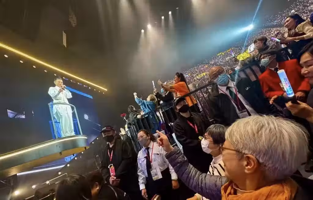 在看完演唱會的陳敏兒,於近日在社交平台上,貼出了她在劉德華在演唱會上相望的照片,只見照片中兩人雖相隔一段距離,但卻在眼神接觸後,彼此默契的打起招呼。