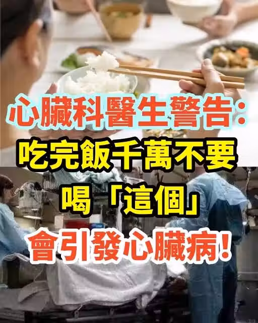 心臟科醫生警告:吃完飯千萬不要喝這個,否則會引發心臟病!
