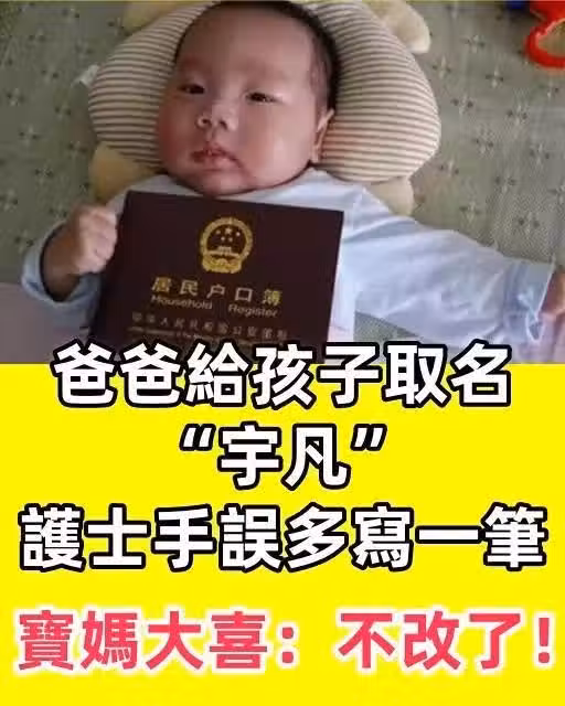 爸媽給孩子取名「宇凡」,護士手誤多寫一筆,寶媽大喜:不改了