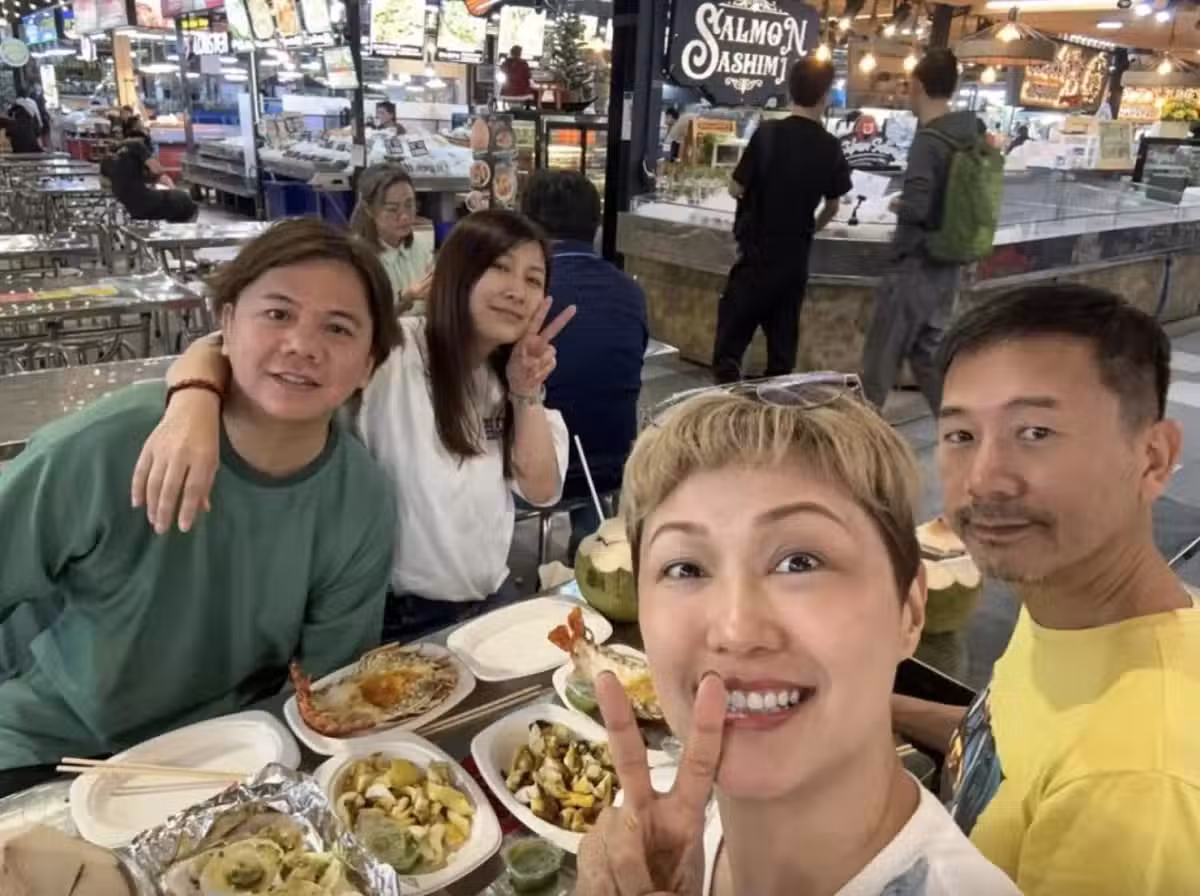 羅敏莊移居泰國在當地招待朋友,在大排檔吃海鮮,宣萱也在樂開懷