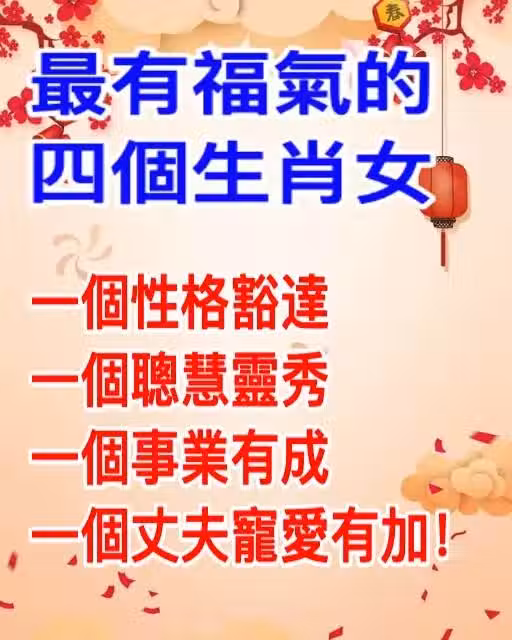 都說「家中有賢女,福氣滿門庭」,今天就來聊聊這四個生肖女,她們簡直就是福氣的化身!